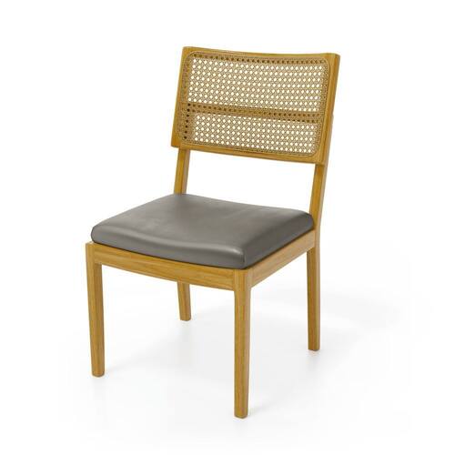 MadeiraCadeira Milena Madeira Maciça Assento Estofado Encosto De Tela Palha Sextavada Courino Preto 503 - Cadeira Em Madeira Maciça Encosto De Tela Palha Sextavada