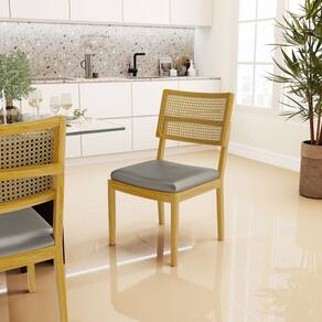 Apresentamos a você as cadeiras Milena, estruturadas em madeira maciça na cor castanho com telinha nos encostos, assentos estofados com espuma D-23.