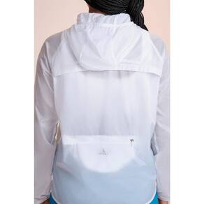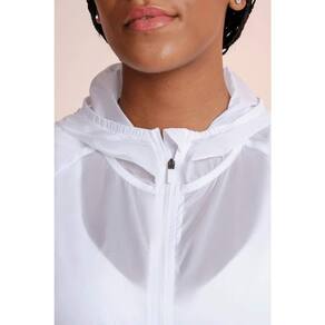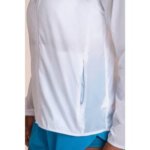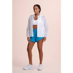 Jaqueta modelo corta vento com manga longa e gola alta. Possui capuz e detalhes refletivos. É possível dobrar a jaqueta de forma que se transforme em uma bolsa, prática de carregar até pela alça. Uma aliada para exercícios outdoor e que traz a versatilidade para prática a atividade física.