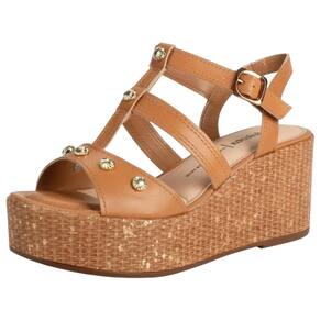Sandália Feminina Macia Ajustável Anabela Média Dakota - 37 - Laranja