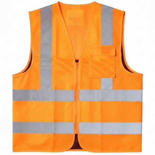 Colete de segurança confeccionado em tecido 100% poliéster fluorescente, com faixas refletivas prata, fechamento em zíper. Colete de Sinalização de alta visibilidade, sinalização de alta visibilidade.