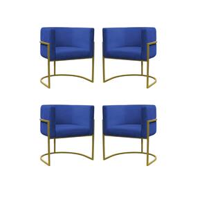 Kit 4 Poltronas Reforçadas Decorativa Sala Carla Base Ferro Dourada Suede - Azul Marinho