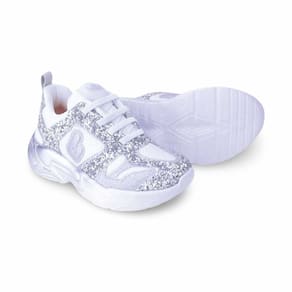 Nosso modelo, na cor branca com glitter prateado delicado, é ideal para acompanhar os pequenos em cada descoberta. Possui solado em EVA com tecnologia BPlus que garante tração e maciez. O elástico facilita o calce, e a palmilha Fisioflex simula o andar descalço, assegurando um bem-estar extremo e ativando funções neurológicas a cada passo.