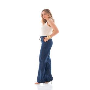 Calça Jeans Feminina Arauto Wide Leg Leve - Azul Marinho - G