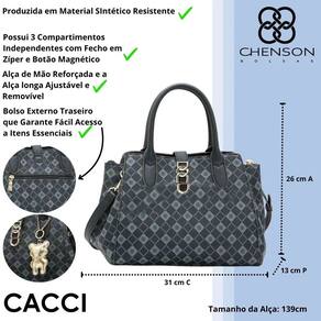 A bolsa feminina Chenson é o equilíbrio perfeito entre elegância e funcionalidade. Produzida em material sintético resistente, apresenta acabamento de alta qualidade e estampa moderna, ideal para quem busca estilo em todas as ocasiões. Seu design estruturado garante um visual sofisticado e versátil, combinando facilmente com looks casuais ou formais.