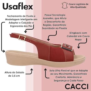Sandalia Feminina Anabela Baixa Passeio Elegante Usaflex - 36 - Marrom