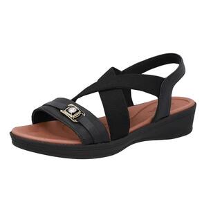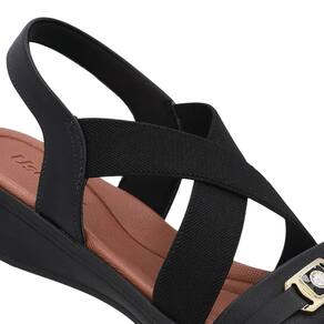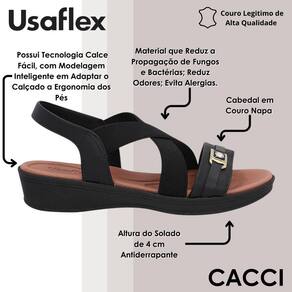 Sandalia Feminina Anabela Baixa Couro Tira Macio Usaflex - 36 - Preto