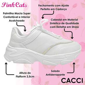 O Tênis Infantil Menina Strass da Pink Cats é a escolha perfeita para as pequenas que querem estilo e conforto em um só modelo! Com um design moderno e detalhes brilhantes em strass, ele traz um toque de personalidade para os looks do dia a dia. Seu cabedal em material sintético de qualidade garante durabilidade, enquanto o fechamento em cadarço permite um ajuste perfeito aos pés.