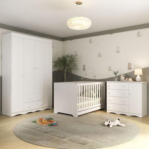 Cada detalhe do Quarto de Bebê Completo com Berço Americano 3 em 1 p/Colchão 130x70cm Multimóveis MP4583 foi pensado para acolher o seu pequeno com amor, conforto e segurança. Um espaço encantador que transmite tranquilidade e transforma os primeiros momentos do bebê em lembranças cheias de ternura.