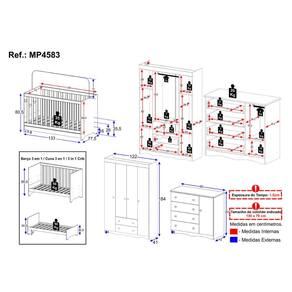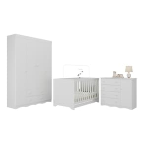 Quarto de Bebê Completo com Berço Americano 3 em 1 p/Colchão 130x70cm Realeza Multimóveis MP4583 - Branco
