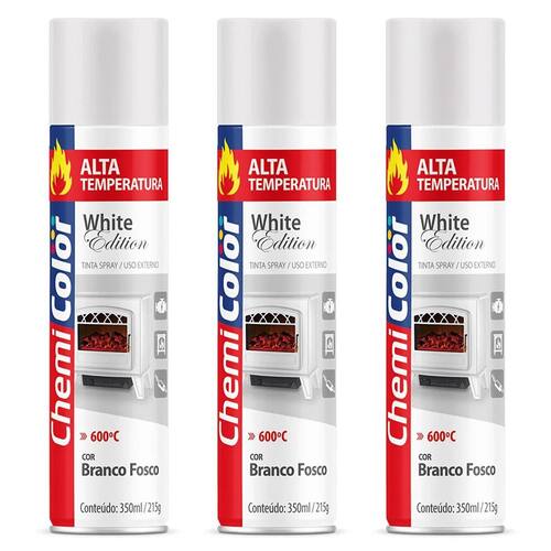 Kit 03 Tintas Spray 350ml Alta Temperatura Interno e Externo Secagem Rápida - Chemicolor - Branco Fosco