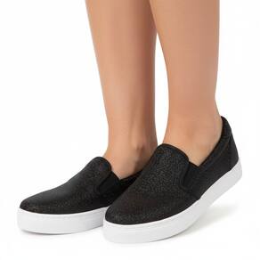 Descubra a combinação perfeita entre praticidade e elegância com o Tênis Feminino Slip On, disponível em versões com glitter preto e bege liso. Ideal para mulheres que buscam versatilidade e charme em um único calçado, este slip on é fácil de calçar e combina com diversos looks, do casual ao urbano.