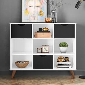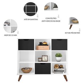 Nicho Organizador Retro Com 3 Gavetas Organizadoras Mdp/Mdf Qmovi - Branco | Preto