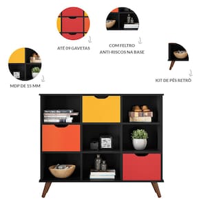 Com 9 compartimentos internos, que contribuem para organizacao do local, o movel possibilita a acomodacao de diversos objetos.