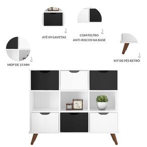 Com 9 compartimentos internos, que contribuem para organizacao do local, o movel possibilita a acomodacao de diversos objetos.