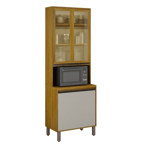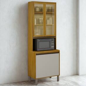 O Paneleiro Torre Quente com Vidro Reflecta 3 Portas Eduarda Plus CHF este movel combina design moderno com funcionalidade, oferecendo um amplo espaco interno para armazenar panelas, loucas, tacas e outros utensilios do dia a dia. Conta com 3 portas, sendo duas com sofisticado vidro reflecta emoldurado, que confere um toque de requinte, e uma porta basculante em MDF com pistao a gas para abertura suave. O espaco exclusivo para micro-ondas e um grande diferencial, contribuindo para uma cozinha mais otimizada e funcional. Com estrutura robusta em MDP e MDF de 15 mm, pes cromados com regulagem e puxadores em aluminio bronze, o paneleiro une durabilidade e estilo. Disponivel em duas opcoes de cores, ele se adapta perfeitamente a diferentes estilos de decoracao.