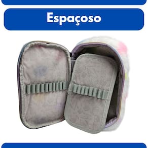 Organização Interna: Possui dois compartimentos principais que se abrem como um livro, com elásticos fixos para até 24 lápis/canetas e um prático bolso em tela (mesh) para pequenos acessórios.