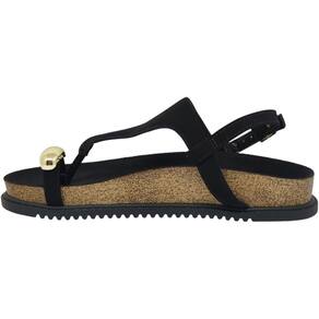 O destaque vai para o detalhe metalizado na parte frontal, que traz um charme delicado e sofisticado, valorizando o visual e deixando a peça ainda mais feminina. O fechamento lateral em fivela ajustável garante melhor calce, firmeza e segurança ao caminhar, enquanto as tiras proporcionam um ajuste perfeito aos pés.
