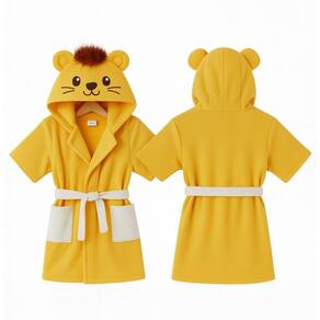 Toalha Roupão Infantil Bebe Criança Piscina Capuz Bichinho - Amarelo - 3