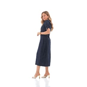 O vestido midi jeans é a escolha ideal para quem busca praticidade sem abrir mão do estilo. Confeccionado em jeans leve e confortável, possui modelagem acinturada que valoriza a silhueta e caimento soltinho, perfeito para o dia a dia.