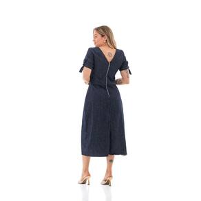 Vestido Jeans Feminino Arauto Midi Fenda - Azul Marinho - P
