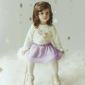 Conjunto Infantil Menina Blusa Manga Longa Off White + Short Saia Bailarina 2Pçs Lilás - Sonho Mágico: Charme e Conforto para a sua Princesa