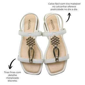 Com salto baixo de 2,0 cm e solado leve, a Sandália Rasteira Mississipi Feminino Gelo proporciona conforto absoluto para caminhadas prolongadas. Ideal para combinar com shorts, vestidos, saias ou peças mais elaboradas, ela é perfeita para acompanhar você em todas as ocasiões, do trabalho ao lazer, sempre com estilo e suavidade.