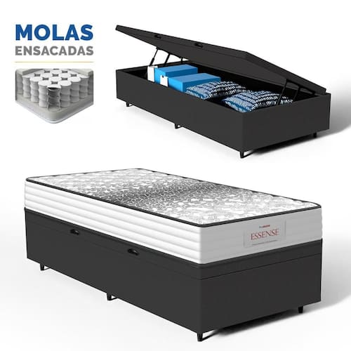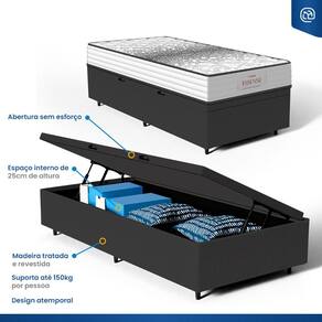 Além do colchão, a base baú incorporada aumenta a funcionalidade do seu quarto, oferecendo um espaço de armazenamento adicional. Construída com madeira tratada, tornando-a não apenas prática mas também durável e resistente. Este conjunto é a solução perfeita para quem busca maximizar o conforto e a utilidade em espaços compactos.