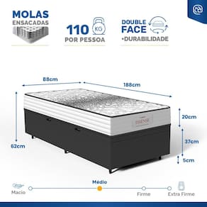 - Dimensões (larg. x comp. x alt.) Solteiro: 88x188x42cm;