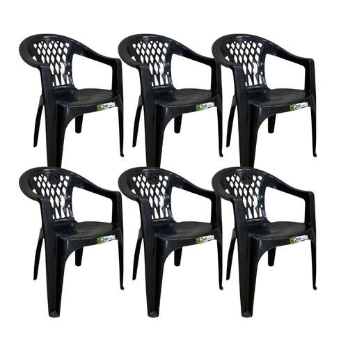 Marca: Duoplastic Modelo: Bella Quantidade de pecas: 6 cadeiras Material: Plastico injetado Tipo: Cadeira com braco Empilhavel: Sim Peso suportado por cadeira: Ate 120 kg Uso: Interno e externo