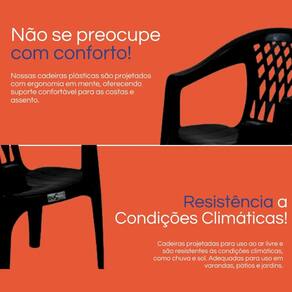 Fabricadas em plastico de alta qualidade, suportam ate 120 kg e oferecem excelente estabilidade. O modelo Duo Bella possui bracos integrados, garantindo mais conforto ao sentar e maior seguranca no uso. Alem disso, as cadeiras sao empilhaveis, facilitando o armazenamento e otimizando o espaco, sendo ideais para apartamentos, cozinhas pequenas e areas de lazer compactas. Com dimensoes planejadas, sao faceis de transportar, limpar e organizar perfeitas para quem deseja aliar durabilidade, estilo e praticidade.
