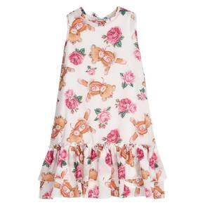 Vestido Infantil com estampa delicada de ursinhos e rosas, ideal para ocasiões especiais ou passeios cheios de charme. O modelo sem mangas oferece frescor para dias quentes e conta com babado na barra que adiciona movimento ao look.