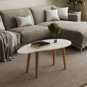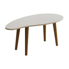 Mesa de Centro Orgânica Oval G7005 Pés de Madeira Maciça - Branco