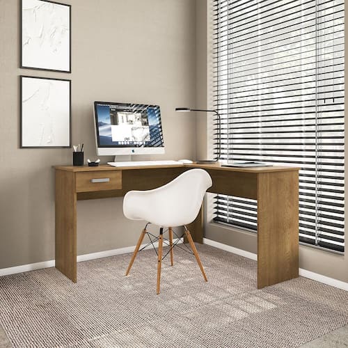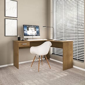 Escrivaninha de Canto Politorno Fênix Formato L 1 Gaveta MDP Pintura UV Espaçosa e Funcional - FREIJÓ