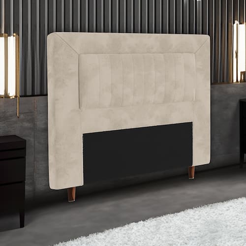 Cabeceira para Cama Box Casal Portobel Cintia com Revestimento em Suede - Bege
