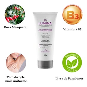 Lumina é livre de parabenos, dermatologicamente testado e clareia sem agredir