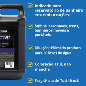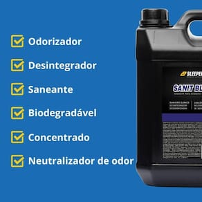 Produto Para Banheiro Químico Sanit Blue Sleepers é um poderoso desodorizante ambiental, indicado para tratamento dos resíduos em reservatórios de sanitários químicos.