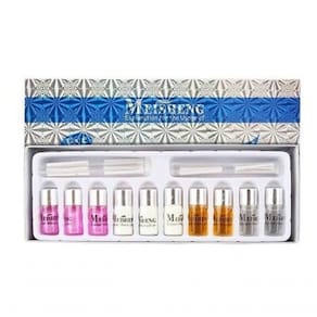 8. tome o agente hidratante (cor clara) nos cílios, removê-lo após 3 minutos.