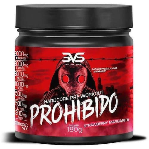 Prohibido, um suplemento pré treino que fornece energia do início ao fim dos seus treinos, aumenta a sua força, foco e concentração garantindo os melhores resultados em suas atividades. O produto é composto por beta alanina, arginina, creatina, taurina, L-Carnitina, L-tirosina e palatinose. Experimente