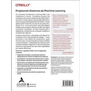 Projetando Sistemas de Machine Learning Os sistemas de Machine Learning (ML) são complexos e únicos. Complexos porque são compostos de muitos componentes diferentes e envolvem muitas partes interessadas diferentes. Únicos porque são dependentes de dados, e esses dados variam muito de um caso de uso para outro. Neste livro, você aprenderá uma abordagem holística para projetar sistemas de ML que sejam confiáveis, escaláveis, de fácil manutenção e adaptáveis a ambientes em constante mudança e requisitos de negócios. A autora Chip Huyen, cofundadora da Claypot AI, considera como cada decisão de design — como processar e criar dados de treinamento, quais recursos usar, com que frequência treinar modelos e o que monitorar — pode ajudar seu sistema como um todo a atingir os objetivos. A estrutura iterativa neste livro usa estudos de caso reais respaldados por vastas referências. Este livro o ajudará a lidar com os seguintes cenários: Engenharia de dados e escolha das métricas adequadas para resolver problemas de negócios Automatizar o processo para desenvolver, avaliar, fazer deploy e atualizar continuamente modelos Desenvolver um sistema de monitoramento para detectar e resolver depressa os problemas que seus modelos podem encontrar em produção Arquitetar uma plataforma de ML que atende a todos os casos de uso Desenvolvimento de sistemas responsáveis de ML “Este é simplesmente o melhor livro para se ler sobre como criar, implementar e escalar modelos de machine learning em uma empresa para obter o máximo impacto.”—Josh Wills Engenheiro de Software na WeaveGrid e ex-diretor de Data Engineering no Slack “Em um mapa próspero do ecossistema, ainda que caótico, a visão de princípios apresentados sobre ML de ponta a ponta serve como uma leitura obrigatória para profissionais dentro e fora da Big Tech, sobretudo para aqueles que trabalham em “escala razoável.”—Jacopo Tagliabue Diretor de IA da Coveo