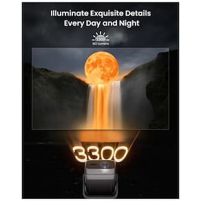 O gimbal rotativo oferece 360° horizontal e 135° vertical, permitindo projeção flexível em salas, quartos ou exteriores, com plataforma Google TV 3.0 para acesso a mais de 10.000 aplicativos e 800 canais gratuitos, compatível com Google Assistant e Google Cast. O som integrado de 2.0 com 40W Dolby Digital Plus proporciona áudio claro, enquanto portas HDMI e USB suportam conexões versáteis; inclui suporte para montagem no teto. Construído em metal e plástico, o projetor não possui resistência à água e opera com Wi-Fi e Bluetooth para transmissão sem fios.