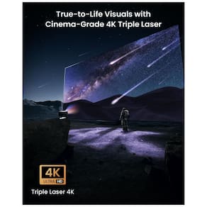 O Projetor JMGO N1S Ultimate+ utiliza tecnologia de laser triplo para resolução 4K UHD (3840 x 2160 pixels), com contraste de 1600:1 e profundidade de cor de 10 bits, garantindo imagens nítidas e precisas em diversas condições de iluminação. Equipado com brilho de 3300 lumens ISO, o aparelho mantém qualidade de imagem superior em ambientes claros ou escuros, suportando HDR10 para maior gama dinâmica. O sistema FlexiSmart 2.0 inclui correção automática de keystone e foco em tempo real, com sensor 3D-TOF e câmera CMOS para adaptação inteligente a ângulos, cores de parede e tamanhos de tela.?