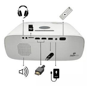 CARACTERÍSTICAS - Brilho da Imagem: 10.200 Lumens ANSI - Tamanho da projeção: 30-120 polegadas - Conexões de entrada: 2x HDMI / USB 2.0 / Micro SD / 3.5 mm Fone de ouvido / AN IN - Emissão de som: 40 dB - Fonte de Luz: LED - Controle remoto: Sim - Resolução: 1920 x 1080 px - Conexões de saída: Mini Jack - Vida útil da fonte de luz: 50000h - Dimensões: 10.4 cm x 25 cm x 20.9 cm (C x L x A) - Intervalo de distância de projeção: 1 à 7 metros - Relação de contraste: 2280:1 - Alto-falante integrado: Sim - Tipo de resolução suportada Full HD 1080p