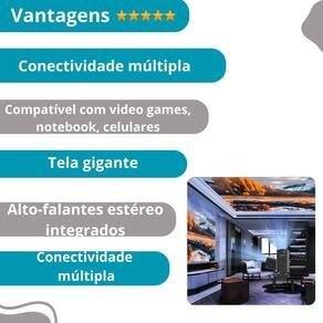 Especificações: Resolução: 1080p Distância de projeção: 1 a 4 metros Lâmpada: led de longa duração Lúmens: 10000 Relação de contraste: 2000:1 Vida útil: 100.000 horas Wi-fi: 5g Sistema android: 11 integrado Ram: 2gb Rom: 8gb