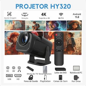 Características: Desempenho visual excepcional: imagens incrivelmente nítidas e vibrantes em uma tela expansiva de até 170 polegadas. Conectividade avançada: wi-fi 5g para uma conectividade rápida e estável, sistema android 11 integrado para acesso a uma variedade de aplicativos e serviços de streaming. Design portátil e leve: com apenas 1kg de peso, o projetor hy320 é incrivelmente portátil, ideal para todas as ocasiões.