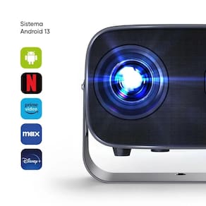 O Vision 3 Smart Get é o projetor ideal para quem busca praticidade e imagem de qualidade. Com 3000 lúmens e resolução HD, projeta telas de 40" a 210" com ótima nitidez. O Android 13 integrado permite acessar apps como Netflix, Prime Video, Disney+ e Max direto no aparelho, sem dispositivos extras. Seu design com rotação de 270 facilita o posicionamento, e o alto-falante embutido de 3W garante som claro para filmes, séries e apresentações. Um projetor moderno, versátil e pronto para criar uma experiência de cinema em casa.