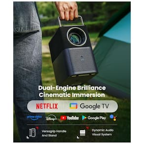 O TCL A1s é um projetor portátil com resolução nativa 1920x1080 e suporte a 4K/HDR10, equipado com Google TV oficial licenciado para Netflix, Prime Video, YouTube, Hulu e mais de 1.000 apps da Google Play Store, eliminando necessidade de TV sticks ou configurações complexas. Design compacto com alça ajustável (funciona como suporte até 15°) facilita transporte e uso em quartos, salas, jardins ou viagens.