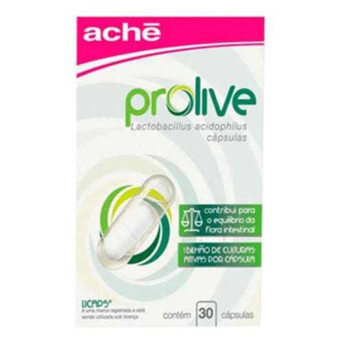 Prolive C/30 Cápsulas são o probióticos em cápsula com a tecnologia exclusiva LICAPS®, que contém em sua composição o Lactobacillus acidophilus. A ingestão de Prolive contribui para o equilíbrio da microbiota (flora) intestinal, e deve estar associada a uma dieta equilibrada e hábitos de vida saudáveis. Princípio Ativo: Com Lactobacillus Acidophilus Marca: Não Informado