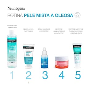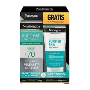 O Kit contém: - NEUTROGENA SUN FRESH Derm Care Facial FPS 70; - Gel de Limpeza Purificante NEUTROGENA PURIFIED SKIN;