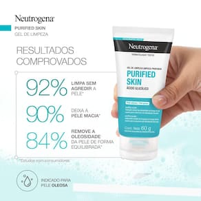 Gel de limpeza purificante NEUTROGENA PURIFIED SKIN - Gel de limpeza profunda com ácido glicólico. Purifica a pele. Redução visível da oleosidade ao longo do dia. Redução visível da oleosidade ao longo do dia. Suave para a barreira de hidratação da pele